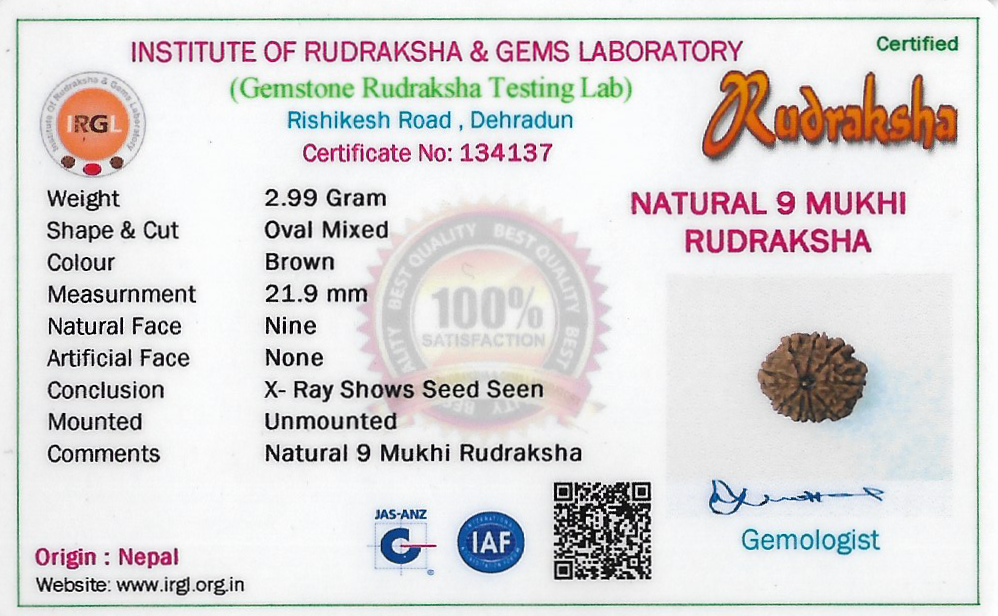 Natural 9 Mukhi Rudraksha weighing 1 piece