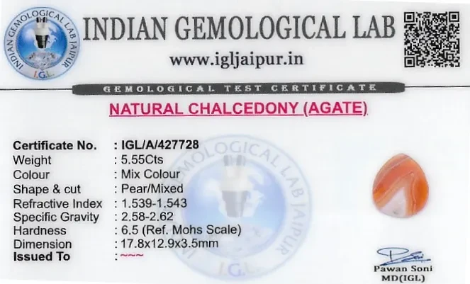 Natural Agate weighing 5.55 carats In Pear