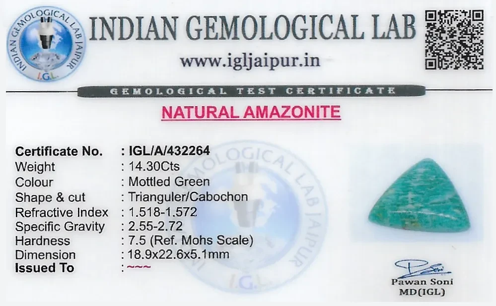 Natural Amazonite weighing 14.3 carats In Triangular