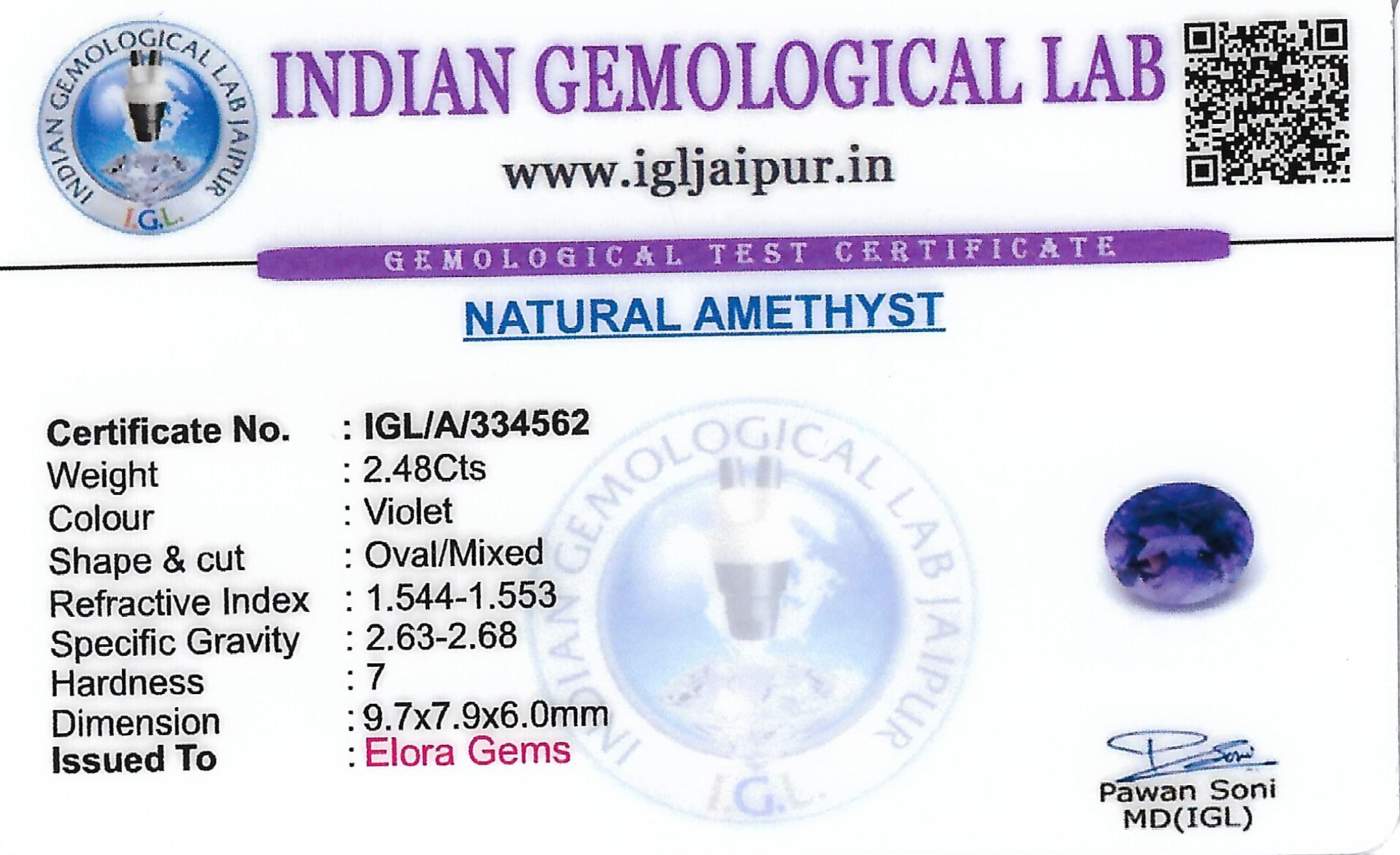This product "Amethyst 10x8 MM 2.48 carats" is purchased.Please select another product.