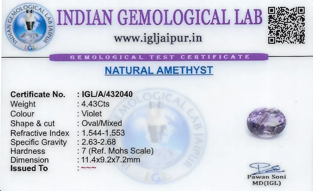Natural Amethyst weighing 4.43 carats In Oval from Brazil
