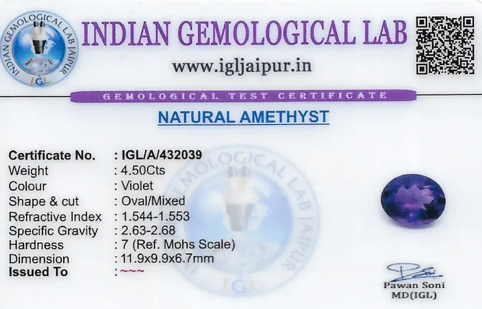 Natural Amethyst weighing 4.5 carats In Oval from Brazil