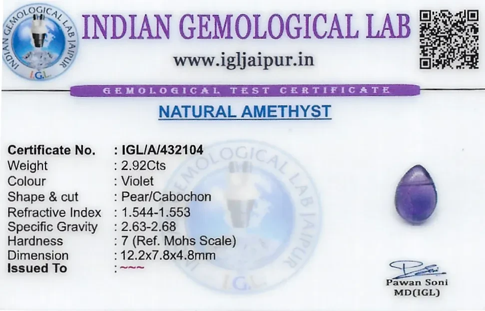 Natural Amethyst weighing 2.92 carats In Pear from Brazil