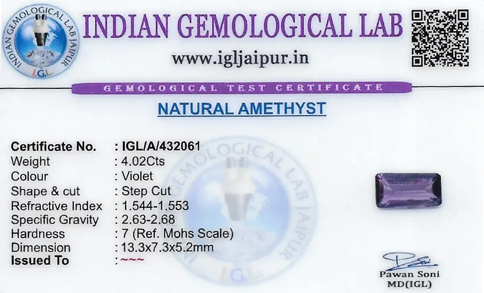 Natural Amethyst weighing 4.02 carats In Rectangle from Brazil