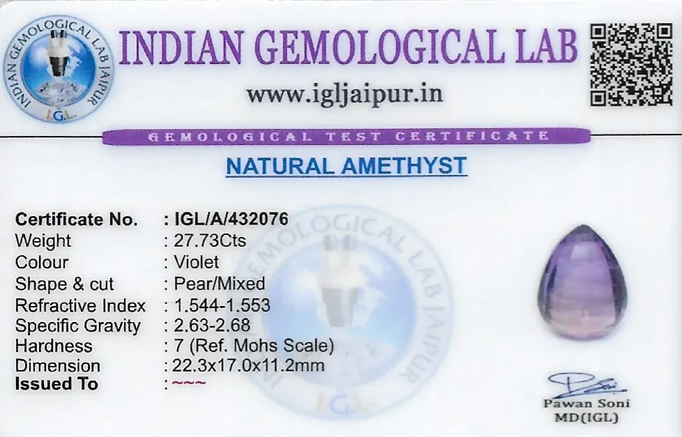 Natural Amethyst weighing 27.73 carats In Pear from Brazil
