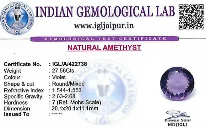Natural Amethyst 20x20 MM weighing - 1 carats in Round shape from Brazil