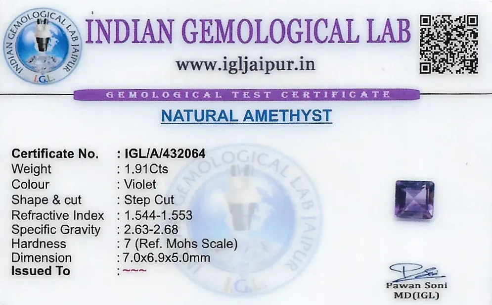 Natural Amethyst weighing 1.91 carats In Square from Brazil