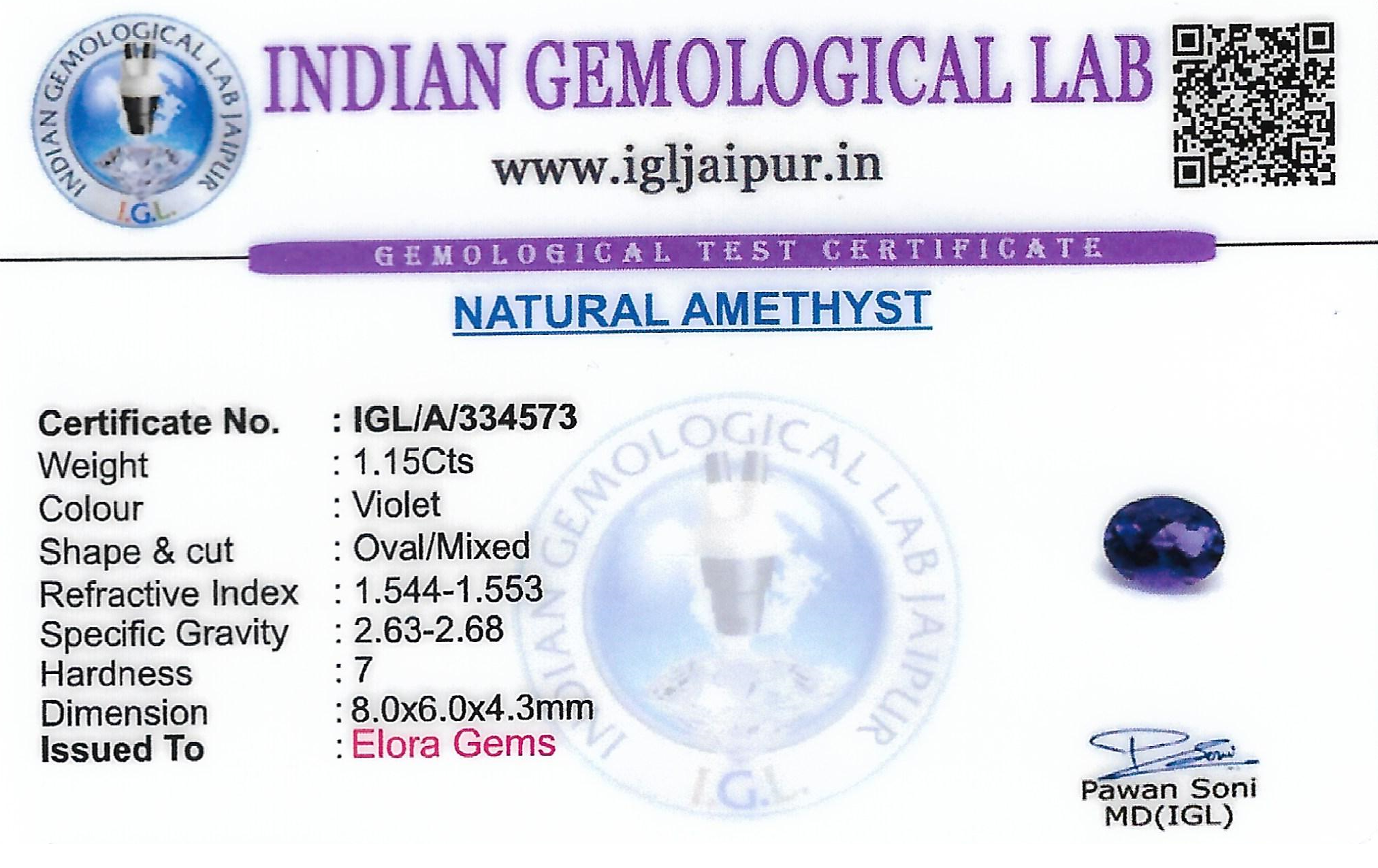 Amethyst 8x6 MM 1.15 carats