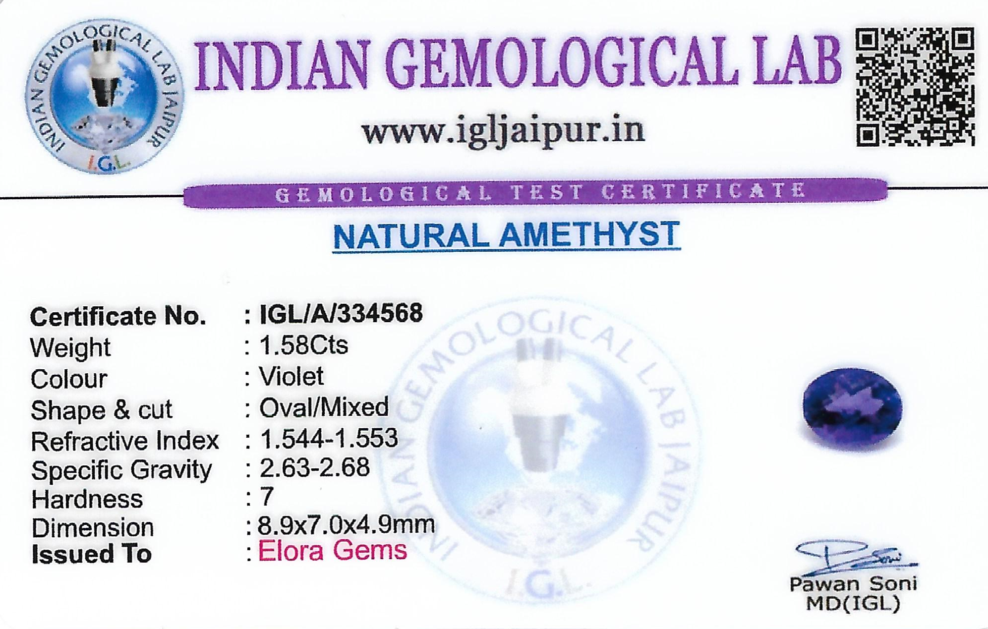 Natural Amethyst weighing 1.58 carats In Oval from Africa