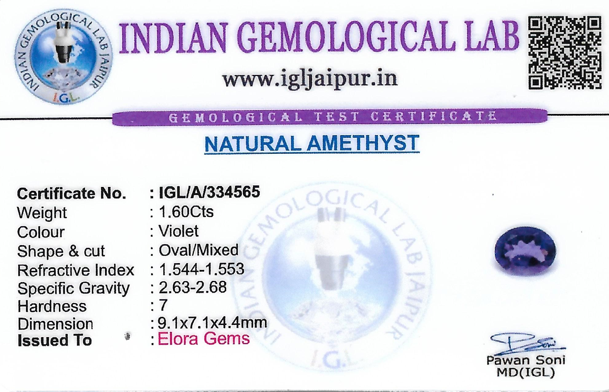 Natural Amethyst weighing 1.6 carats In Oval from Africa