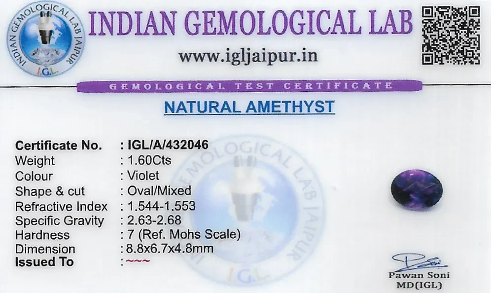 Amethyst 9x7 MM 1.6 carats