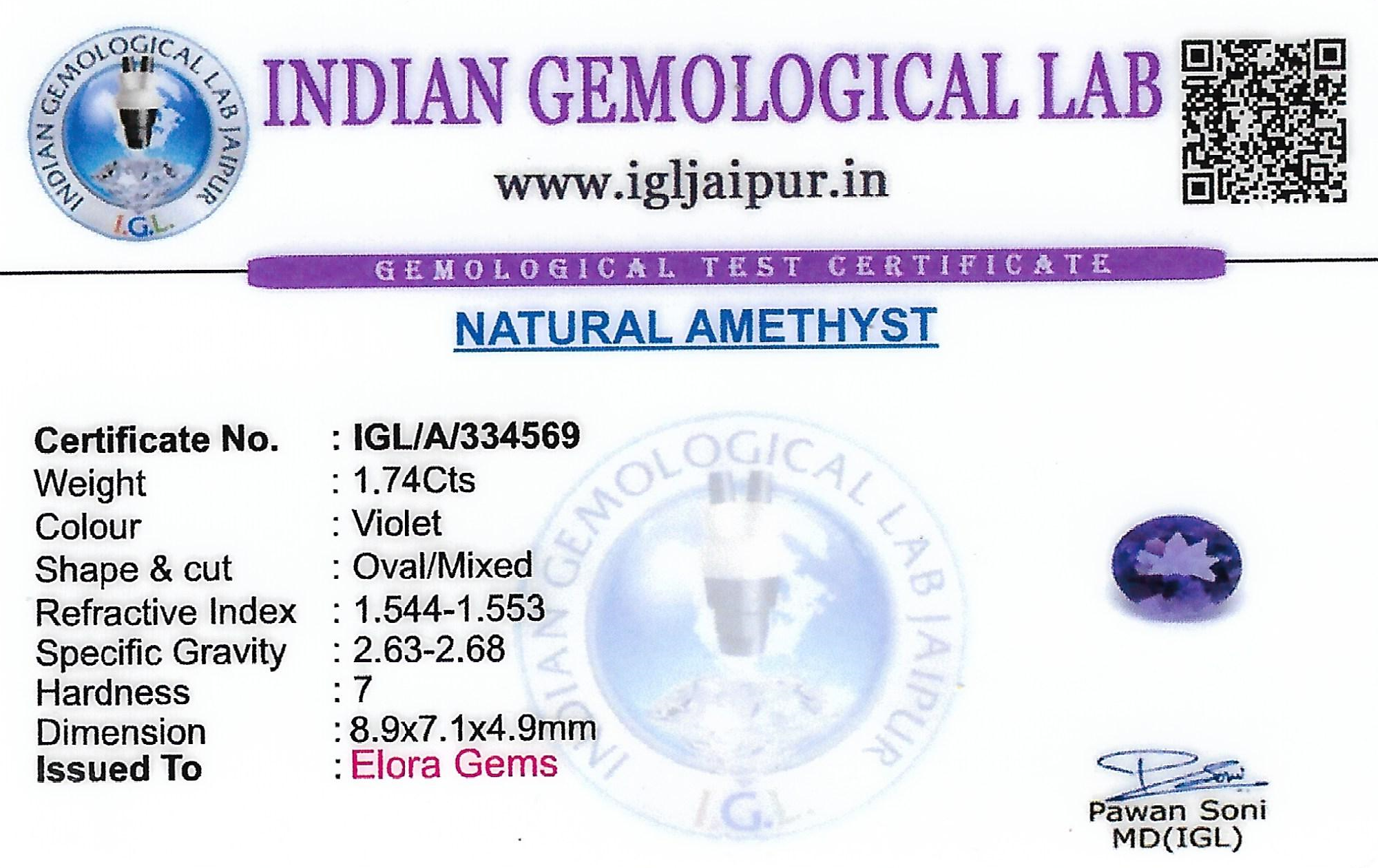 This product "Amethyst 9x7 MM 1.74 carats" is purchased.Please select another product.