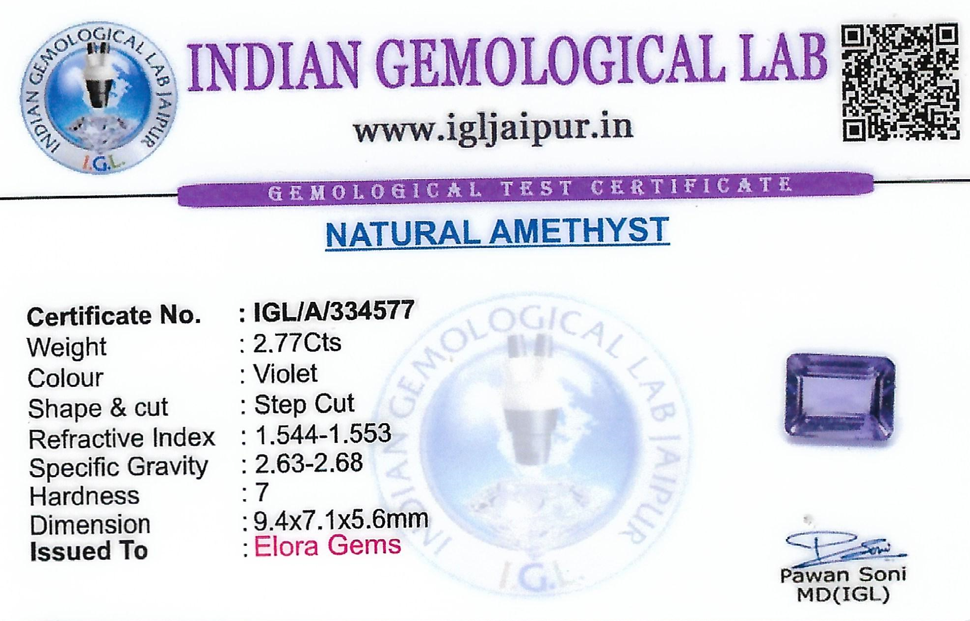 Natural Amethyst weighing 2.77 carats In Rectangle from Africa