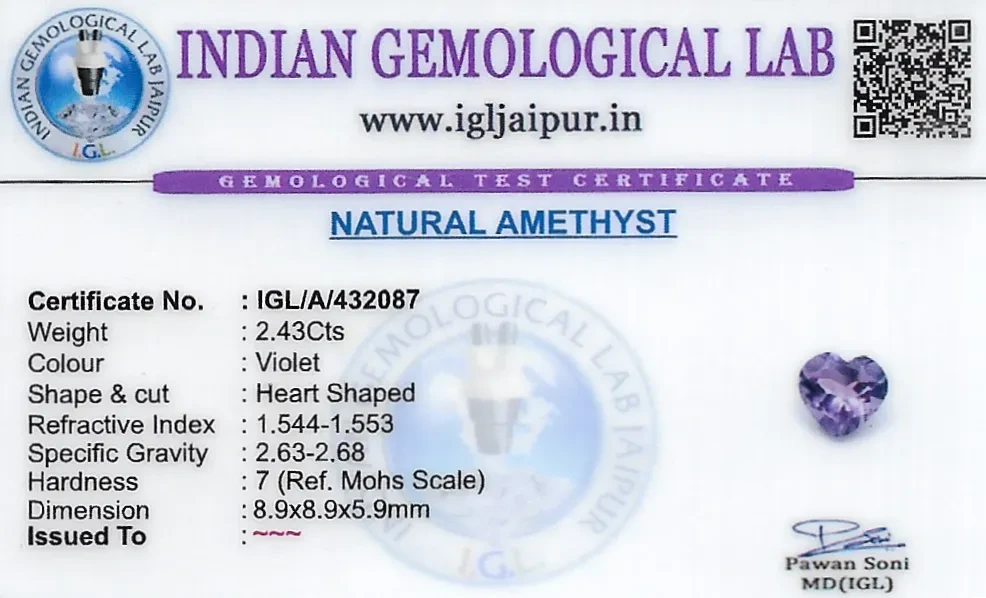 Natural Amethyst 9x9 MM weighing - 2.43 carats in Heart shape from Brazil