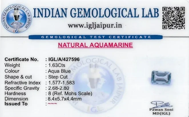Natural Aquamarine weighing 1.63 carats In Rectangle