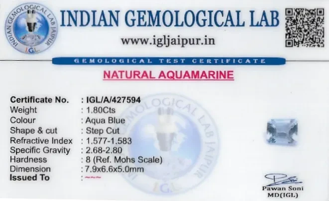 Natural Aquamarine weighing 1.8 carats In Rectangle