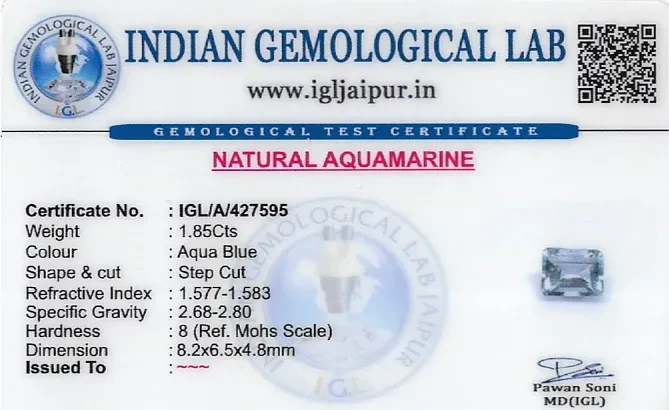 Natural Aquamarine weighing 1.85 carats In Rectangle