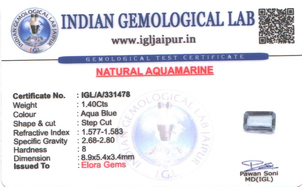 Natural Aquamarine weighing 1.4 carats In Octagonal
