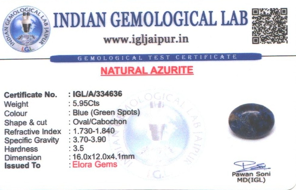 Natural Azurite weighing 5.95 carats In Oval