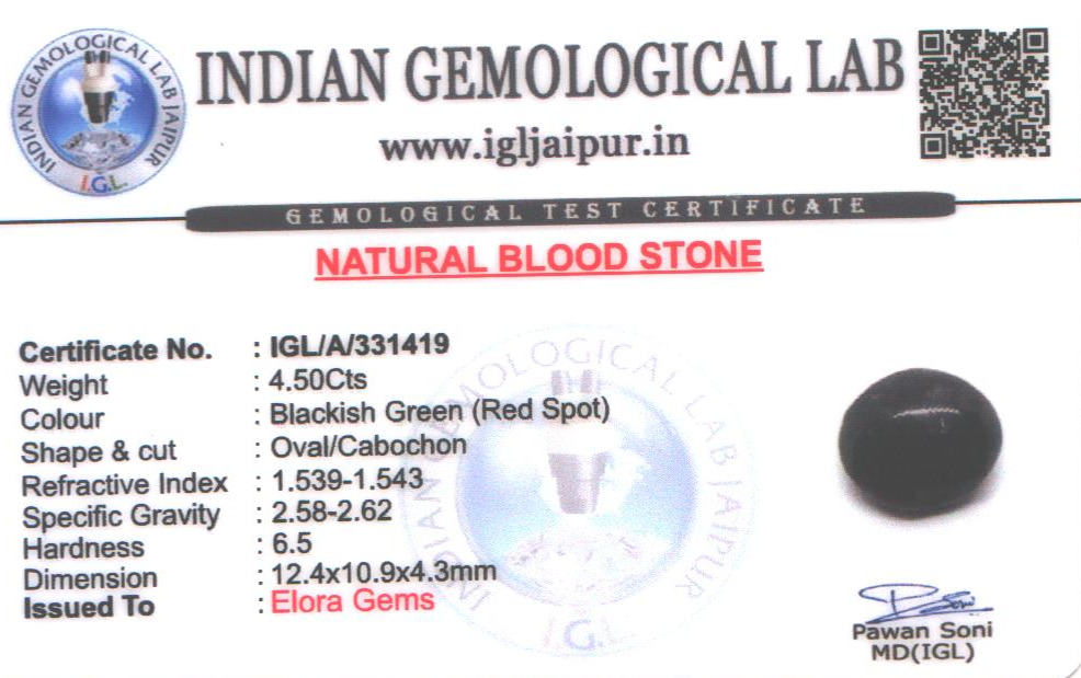 Natural Bloodstone weighing 4.5 carats In Oval