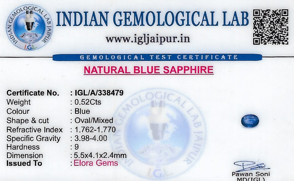 Natural Blue Sapphire (Neelam) weighing 0.52 carats In Oval from Thailand