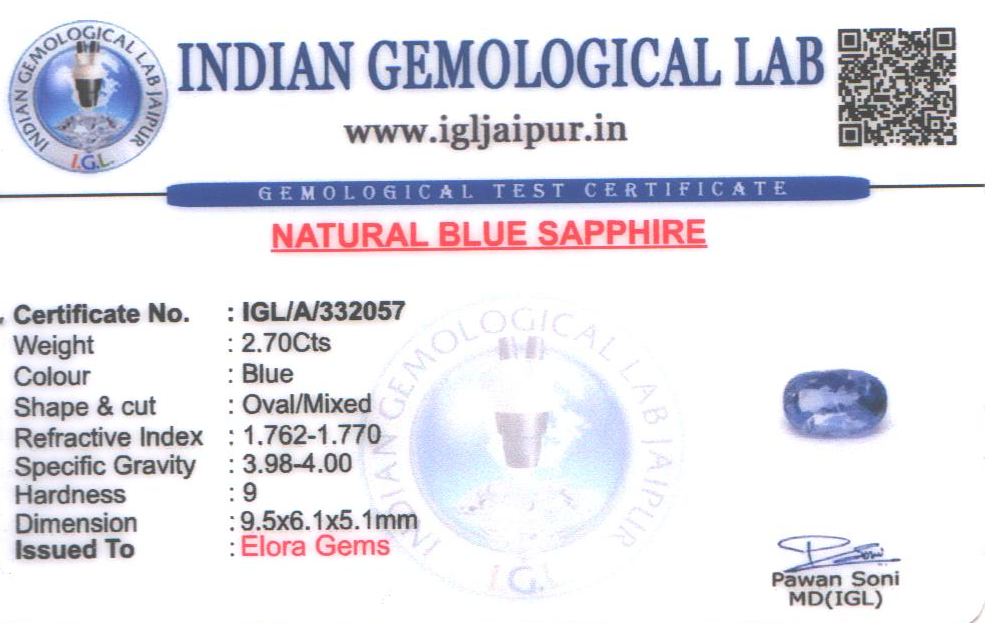Natural Blue Sapphire (Neelam) weighing 2.7 carats In Oval from Sri Lanka (Ceylon)