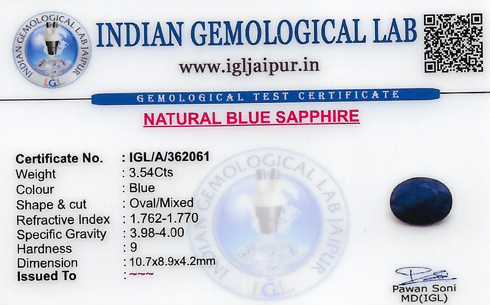 Blue Sapphire (Neelam) 11x9 MM 3.54 carats