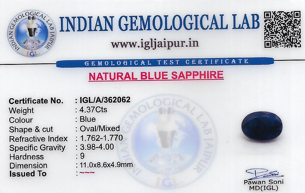 Blue Sapphire (Neelam) 11x9 MM 4.37 carats