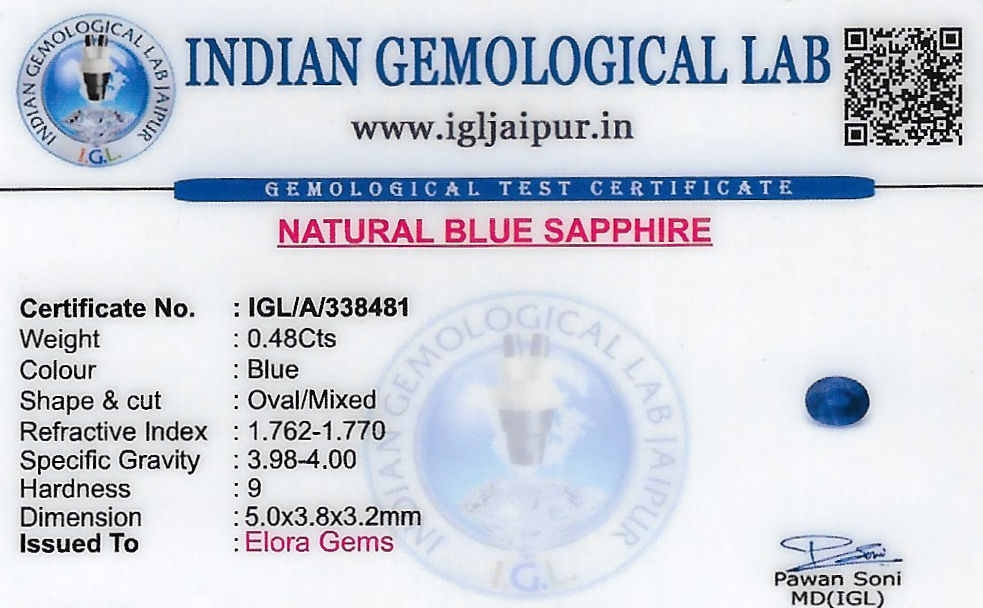 Natural Blue Sapphire (Neelam) 5x4 MM weighing - 0.48 carats in Oval shape from Thailand