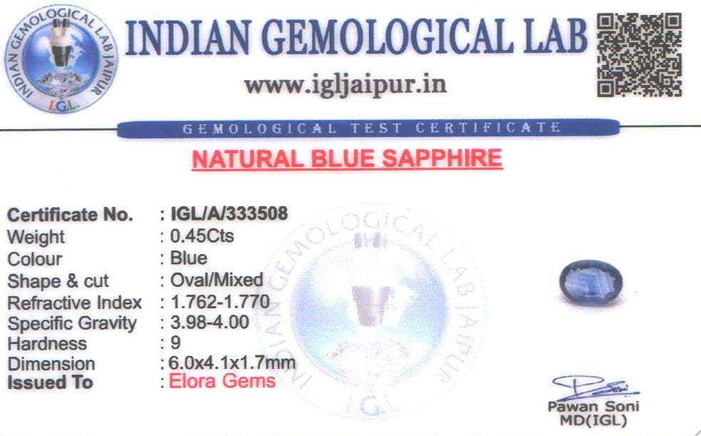 Natural Blue Sapphire (Neelam) weighing 0.45 carats In Oval from Sri Lanka (Ceylon)