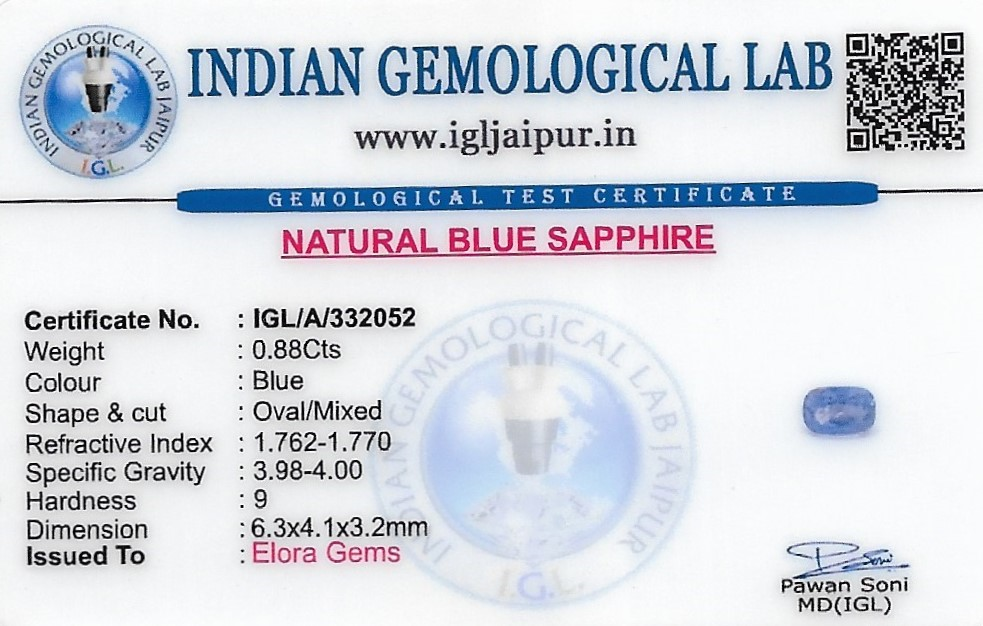 Natural Blue Sapphire (Neelam) weighing 0.88 carats In Oval from Sri Lanka (Ceylon)