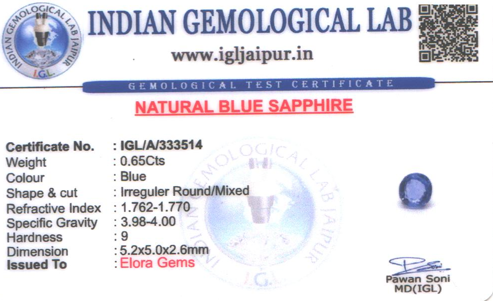 Natural Blue Sapphire (Neelam) weighing 0.65 carats In Irregular Round from Sri Lanka (Ceylon)