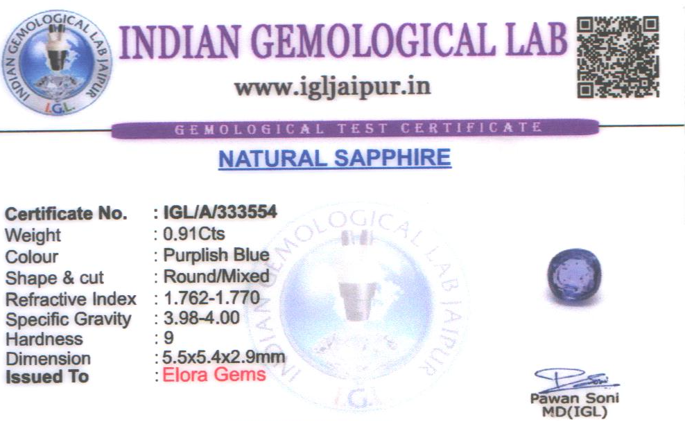 Natural Blue Sapphire (Neelam) weighing 0.91 carats In Round from Sri Lanka (Ceylon)