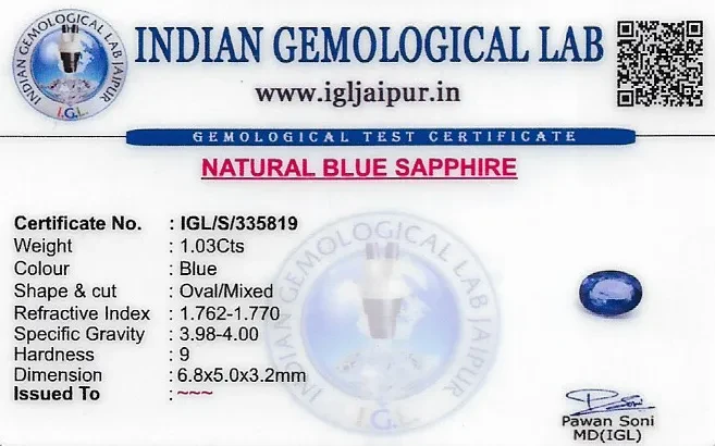 Natural Blue Sapphire (Neelam) weighing 1.03 carats In Oval from Thailand