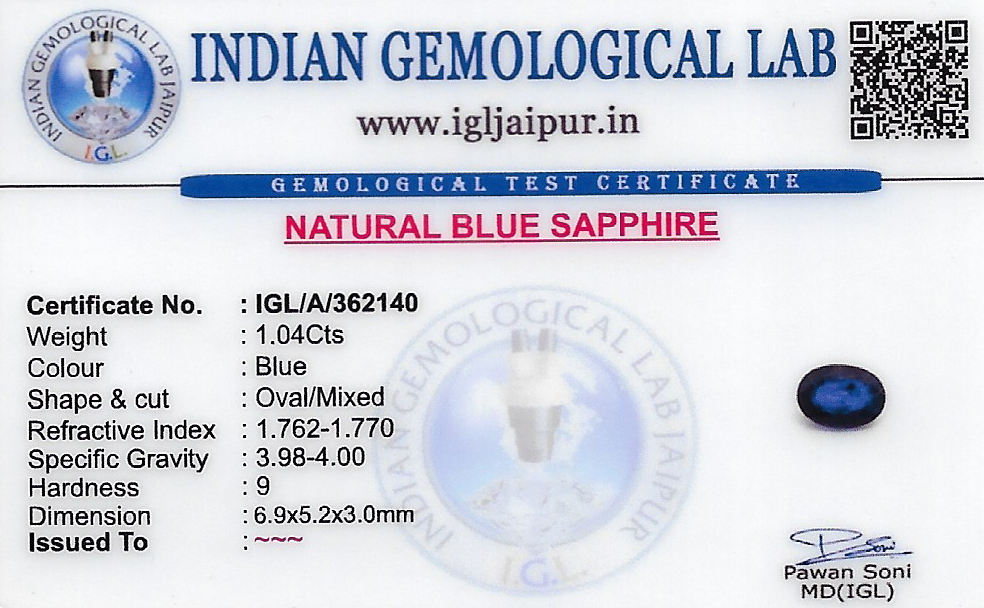 Natural Blue Sapphire (Neelam) weighing 1.04 carats In Oval from Thailand