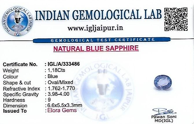 Natural Blue Sapphire (Neelam) weighing 1.18 carats In Oval from Sri Lanka (Ceylon)