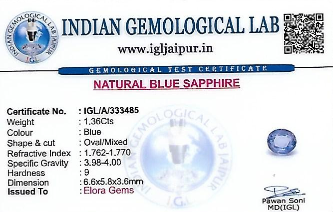 Natural Blue Sapphire (Neelam) weighing 1.36 carats In Oval from Sri Lanka (Ceylon)