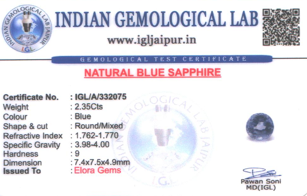 Natural Blue Sapphire (Neelam) weighing 2.35 carats In Round from Sri Lanka (Ceylon)
