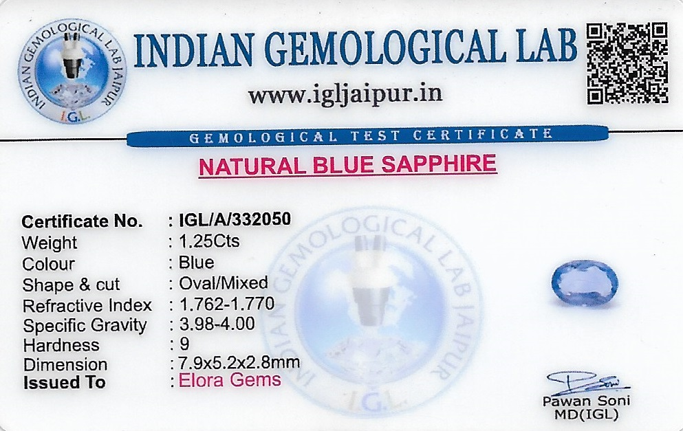 Natural Blue Sapphire (Neelam) weighing 1.25 carats In Oval from Sri Lanka (Ceylon)