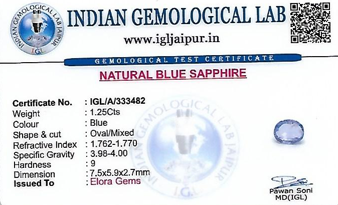 Blue Sapphire (Neelam) 8x6 MM 1.25 carats