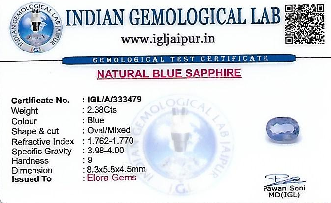 Natural Blue Sapphire (Neelam) weighing 2.38 carats In Oval from Sri Lanka (Ceylon)