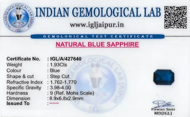 Natural Blue Sapphire (Neelam) weighing 1.93 carats In Rectangle from Thailand