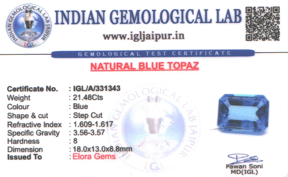 Natural Blue Topaz weighing 21.48 carats In Rectangle
