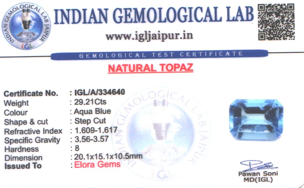 Natural Blue Topaz weighing 29.21 carats In Rectangle
