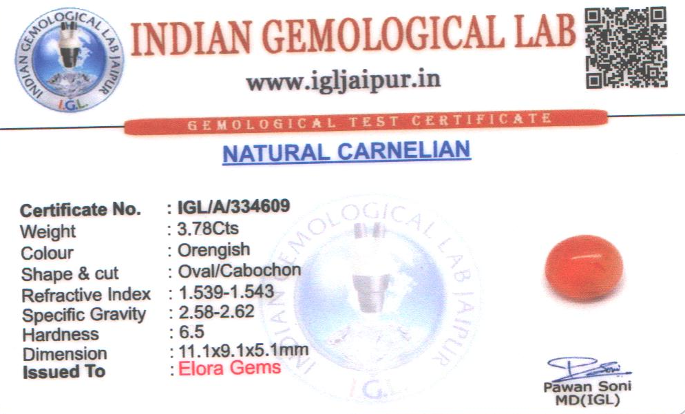 Natural Carnelian weighing 3.78 carats In Oval