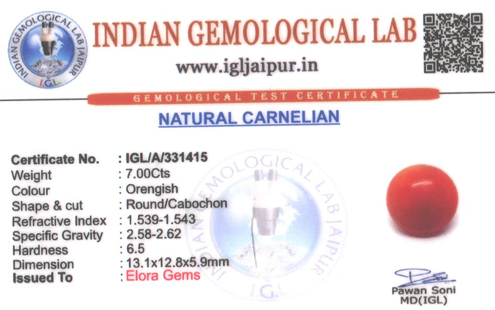 Natural Carnelian weighing 7 carats In Round