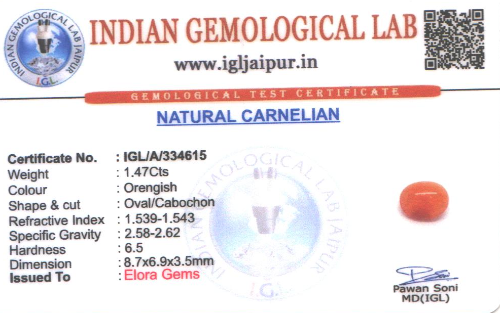 Natural Carnelian weighing 1.47 carats In Oval