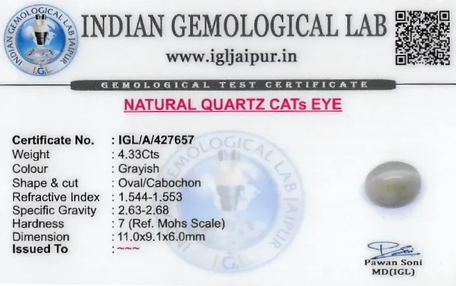 Natural Cats Eye Quartz weighing 4.33 carats In Oval