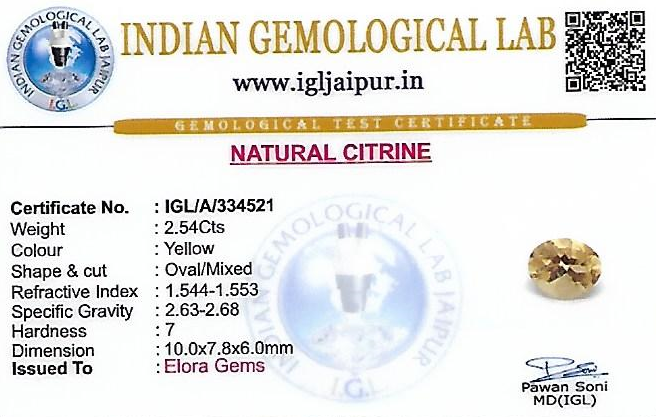 Natural Citrine weighing 2.54 carats In Oval