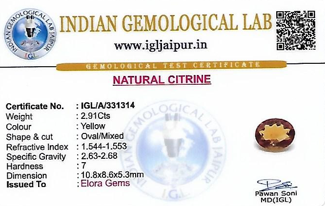 Natural Citrine weighing 2.91 carats In Oval